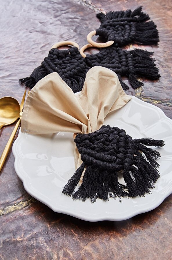 Geri Dönüştürülmüş Yüksek Kaliteli %100 Pamuk İpliğinden Siparişiniz Üzerine Size Özel Üretilmektedir.Halka Kısmı Tamamen Ahşap Malzemelerden Üretilmiştir. Ürünü Kullanmadan Önce Püsküllerin İnce Tarakla Taranması Ve Püskül Dışındaki Kısımlara Buharlı Ütü İle Ütülenmesi Önerilir.Ekran Renk Ayar Farklılıklarından Ve Çekimlerden Kaynaklanan Ufak Renk Farklılıkları Olabilir. Makrome Ürünler Hassas Elişi Ürünler Olduğu İçin Ilık Su Dolu Bir Kapta Beyaz Sabun İle Çitilemeden Yıkanmalıdır.Makrome, Düğümleme (Dokuma Veya Örgü Yerine) Teknikleri Kullanılarak Üretilen Bir Tekstil Şeklidir. Paket İçeriği ; 4 Adet El Yapımı Makrome Peçete Halkası Olarak Gönderilecektir.