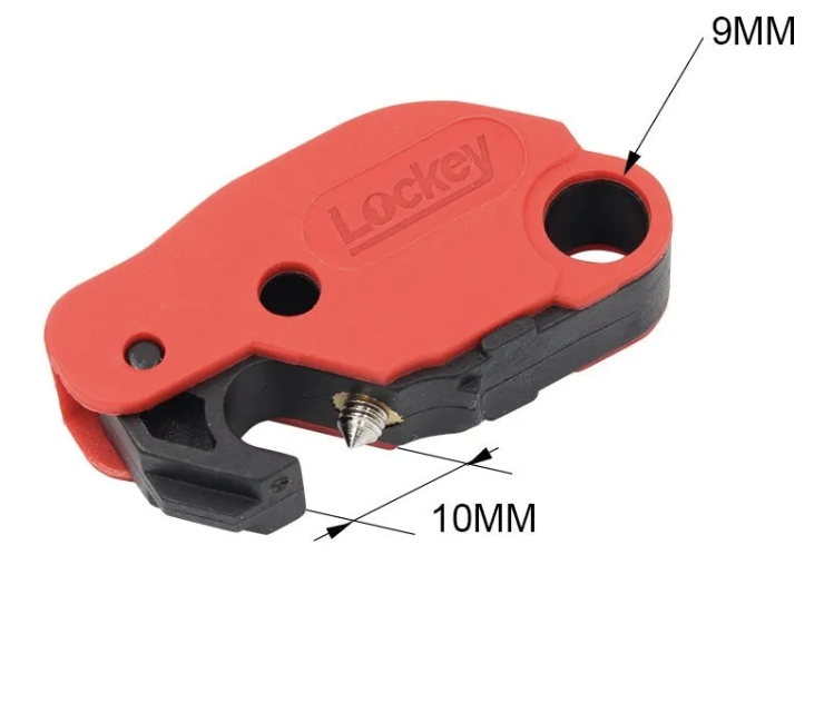 Compact size allows for locking out adjacent breakers. Suitable for locking out multi-pole breakers and works with most tie-bar toggles.